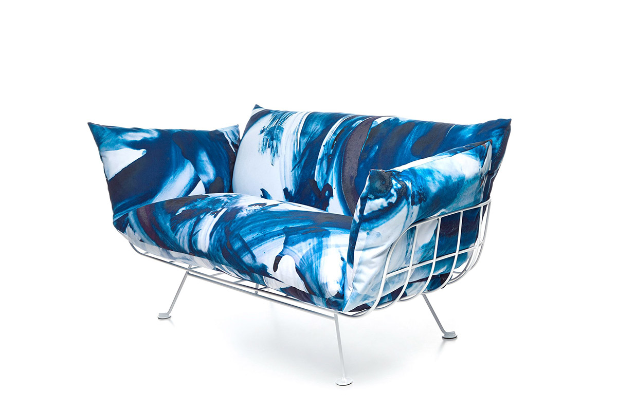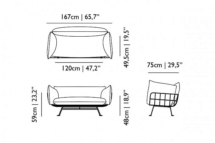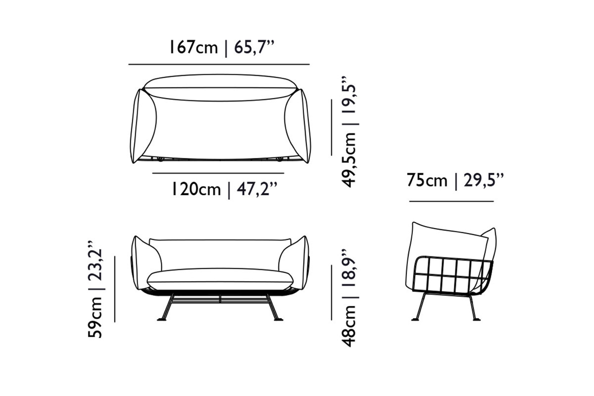 Udoben dvosedv barviti ali enobarvni izvedbi z značilno mrežasto konstrukcijo, ki spominja na gnezdo.