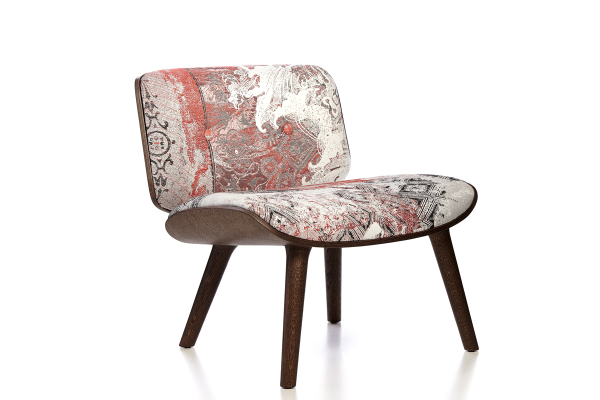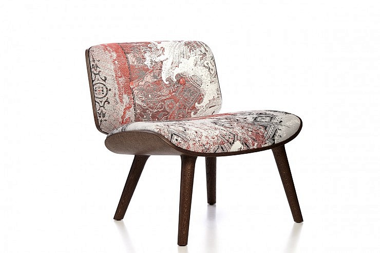 Udoben oblazinjen stol za dnevni prostor ali lounge v različnih tkaninah in usnju z lesenim ogrodjem v svetli in cimet barvi.