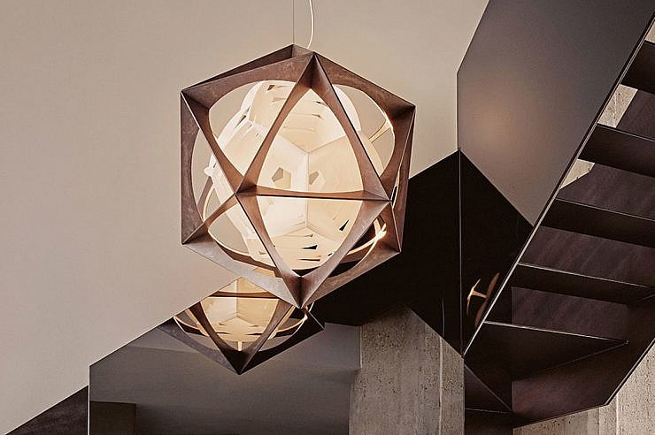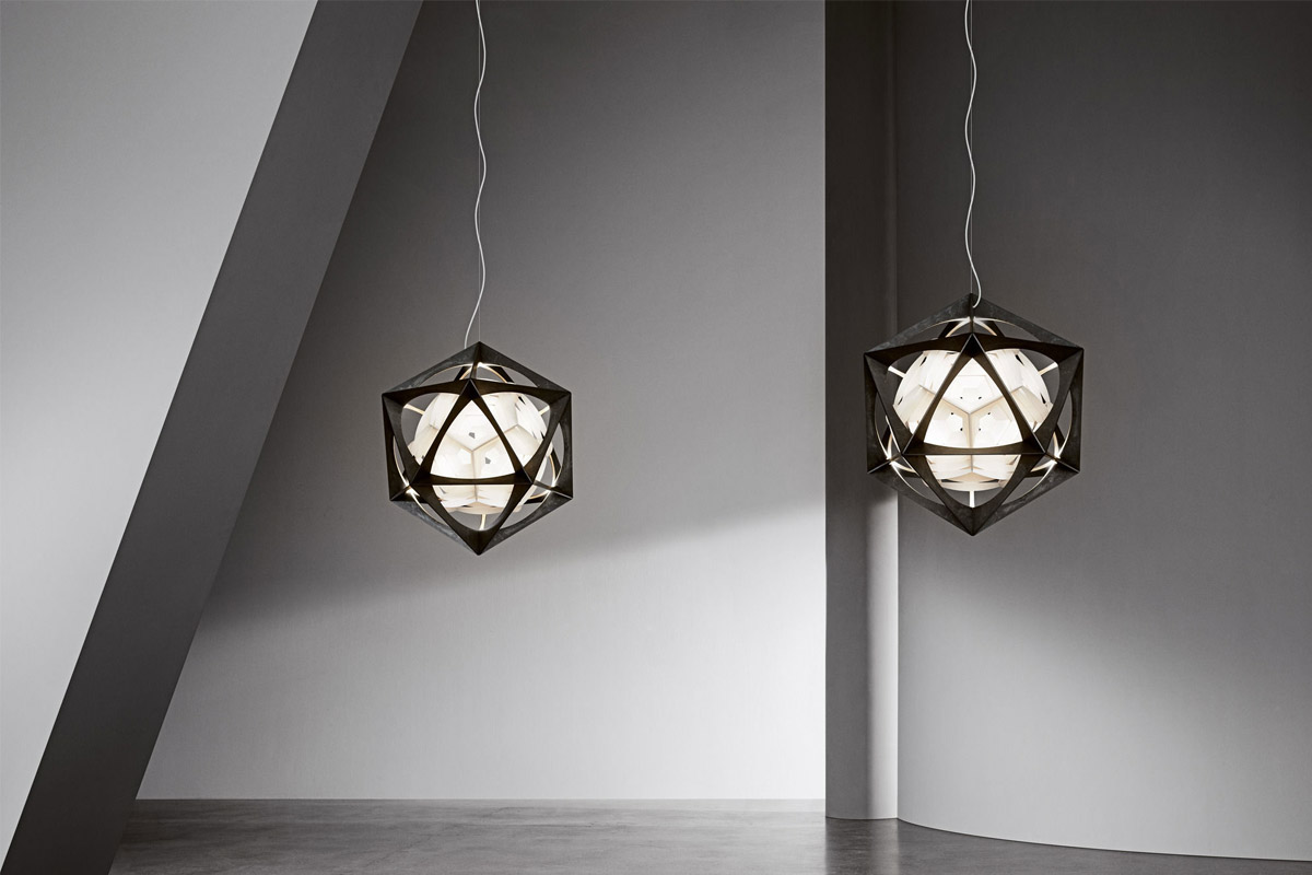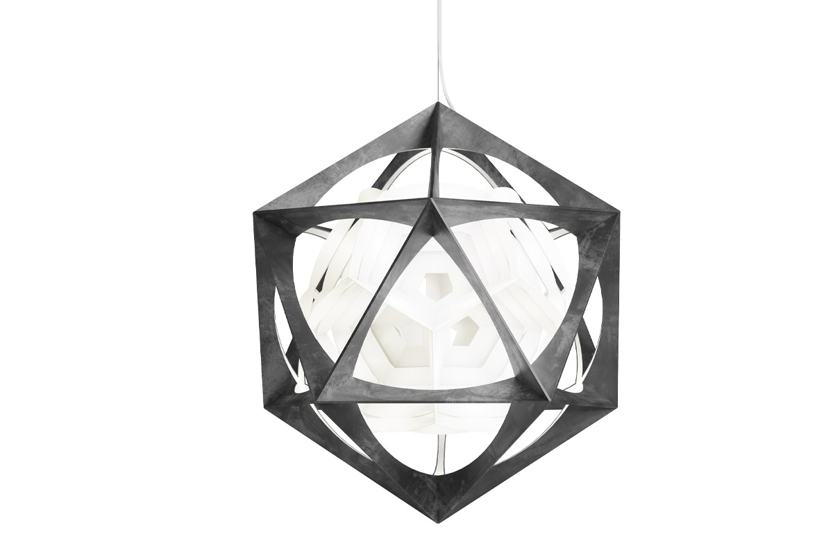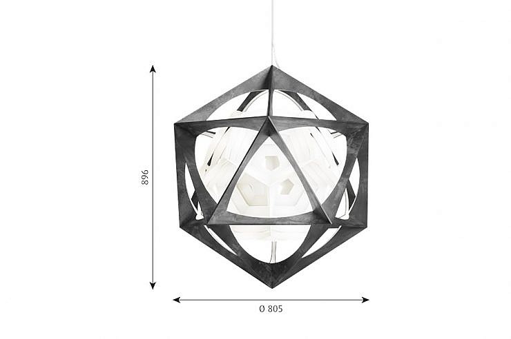Viseče svetilo je bilo ustvarjeno z mislijo na trajnost. Uporabljen aluminij je 90% recikliran, drugi materiali pa so v celoti reciklirani. Sestavljeno je iz dveh kontrastnih, a med seboj povezanih geometrijskih oblik.