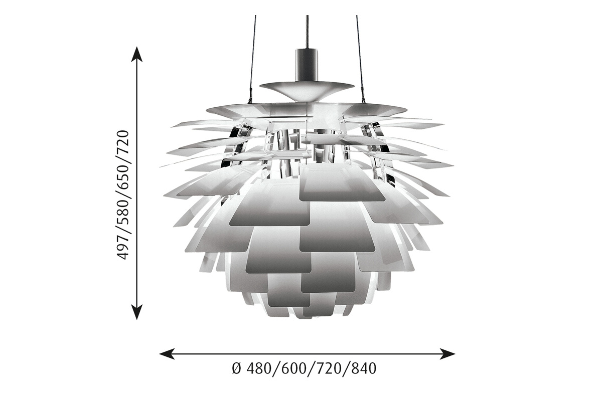 Viseče svetilo brez 100% brez bleščanja, 72 lamelami, ki zastirajo svetlobni vir. Artichoka je ena najbolj ikonska luč Louis Poulsna, oblikovana že pred 50 leti.