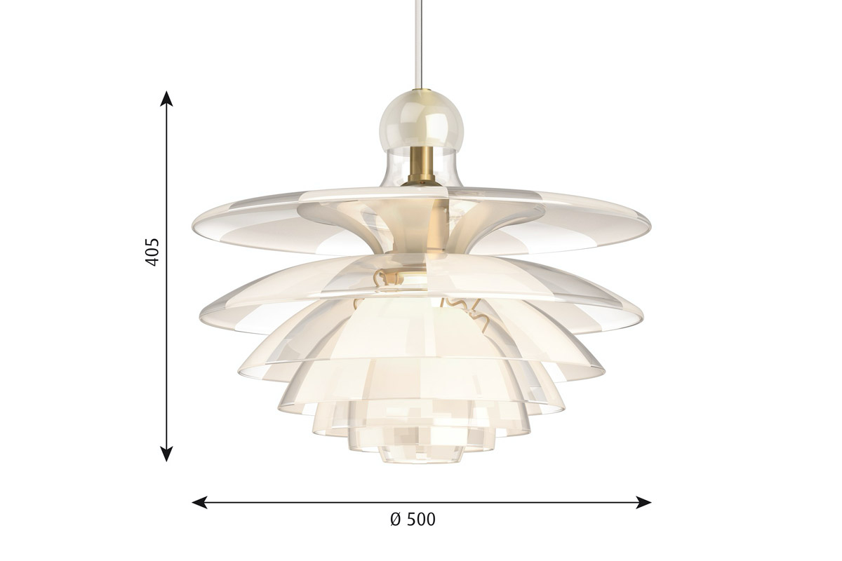 Sedemsenčna steklena krona oddaja svetlobo, usmerjeno navzdol, brez bleščanja, obenem pa oddaja prijetno nežen sijaj.