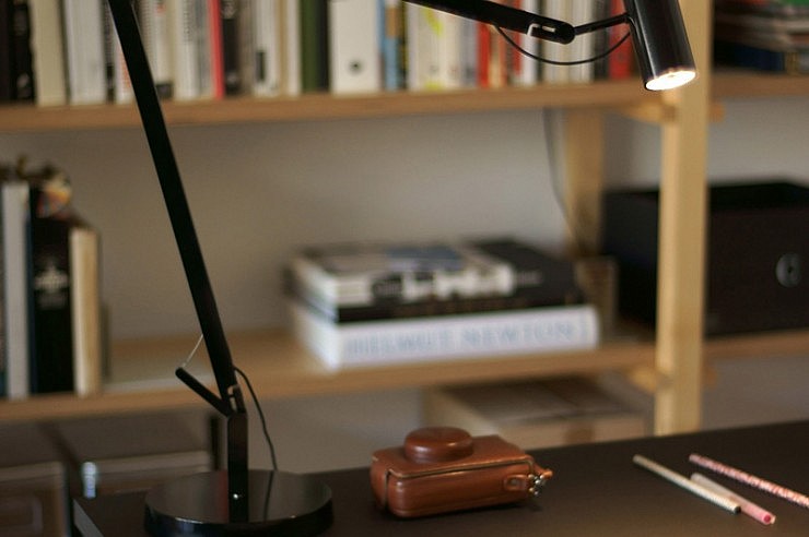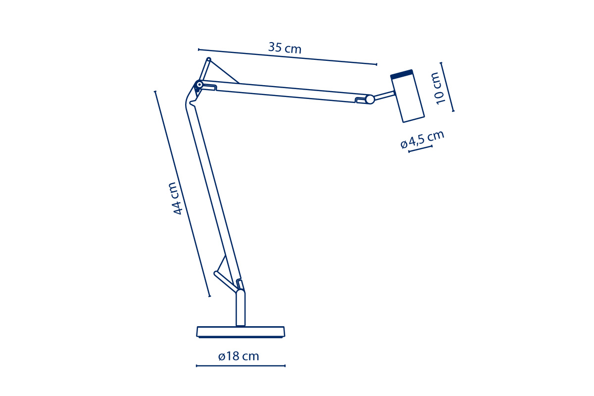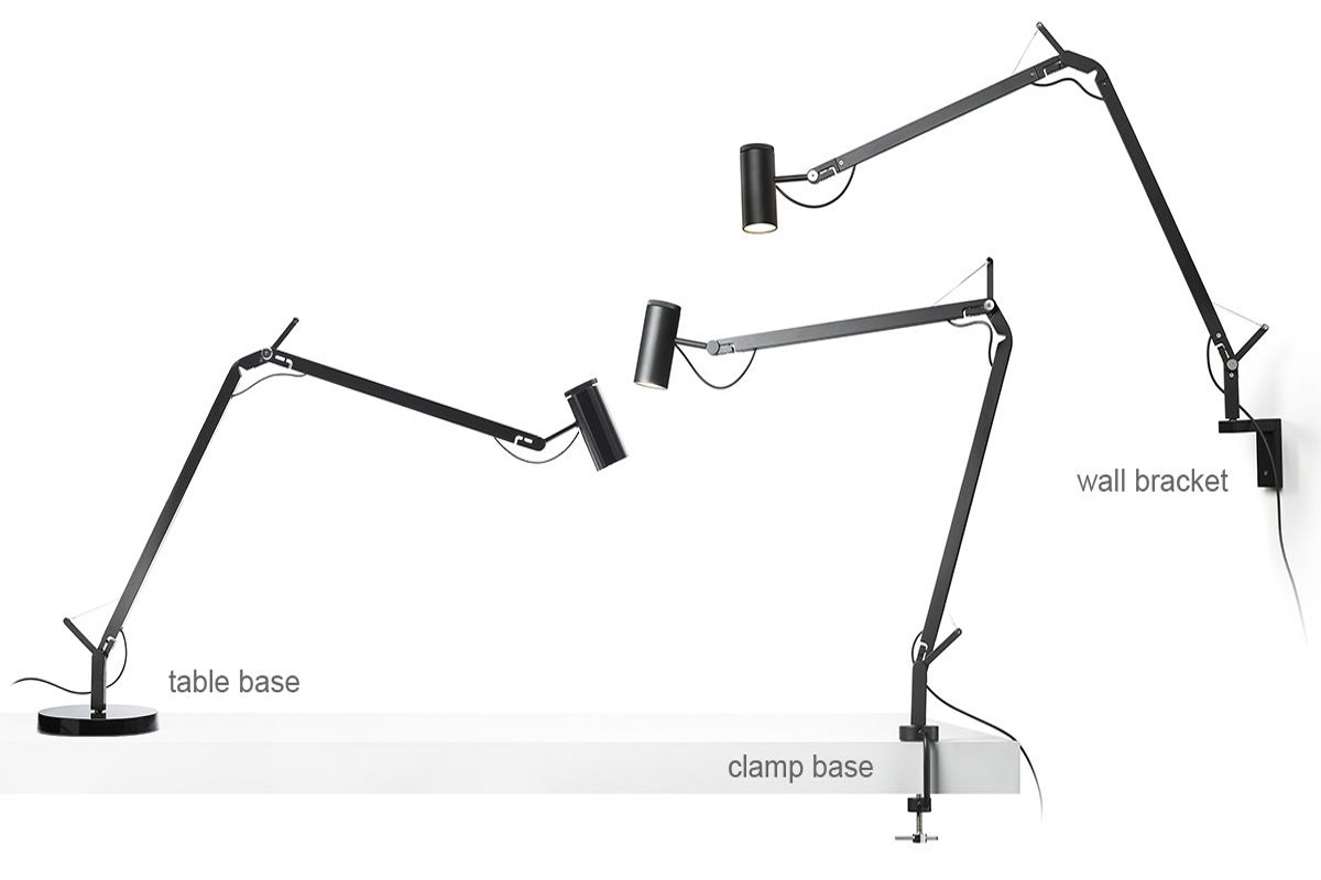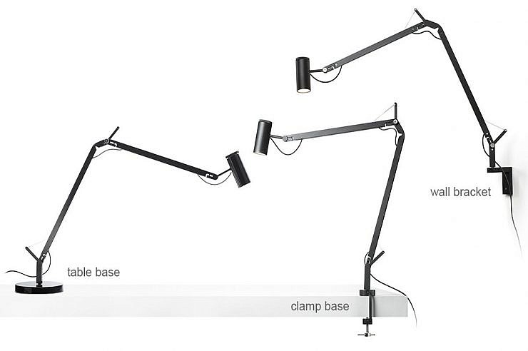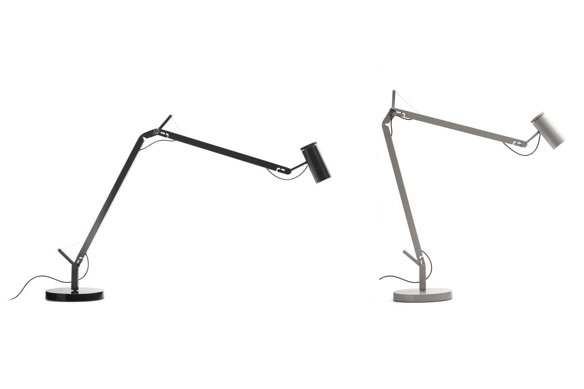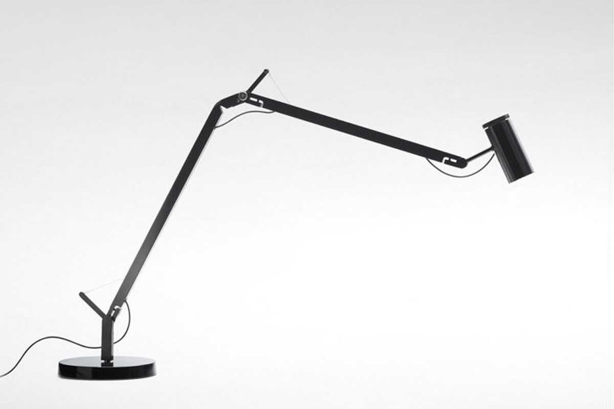 Namizno svetilo z možnostjo rotiranja svetlobnega vira in prilagajanja pozicije le tega.
