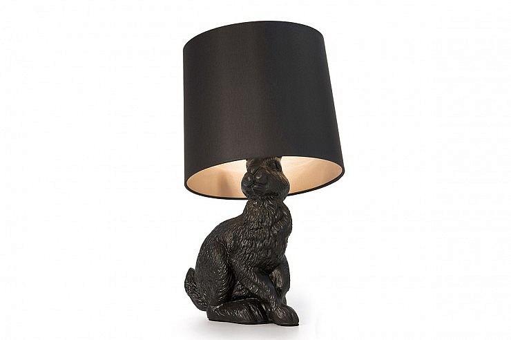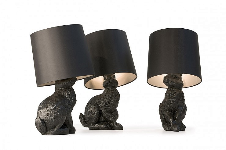 Zajec luč, oblikovan v naravni velikosti živali. Rabbit lamp je ena izmed serije treh živali (Pig table, Rabbit lamp, Horse lamp) oblikovalskega studia Front. Drzen dizajn iz leta 2006, je izzivalen, drugačen in postal je ikonski.