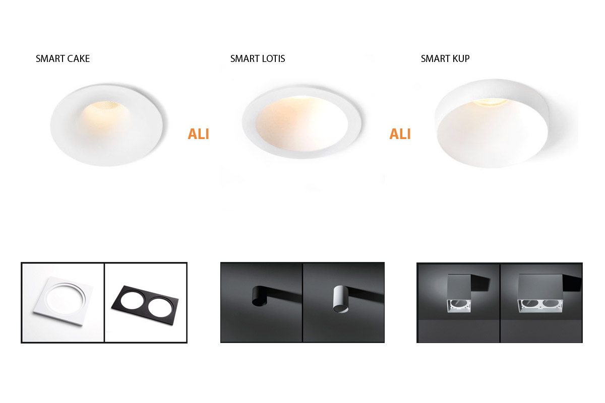Get Smart je ideja podjetja Modular, ki je razvil družino Smart Lotis, Cake in Kup. V osnovi vgradno svetilo lahko s kombinacijo oziroma nadgradnjo različnih mask, valjastega ali kvadratnega ohišja spremeni svoj videz in postane tehnično tudi nadgradno svetilo. S temi več kot 50 možnimi kombinacijami lahko opremimo prostore z isto družino vgradnih in nadgradnih svetil. Svetlobni viri so lahko halogenski GU10 in GU5.3 ali različni LED viri. Različice tudi z širšimi svetlobnimi koti in IP40 zaščito. Izbirate lahko med barvami: črna, bela, zlata.