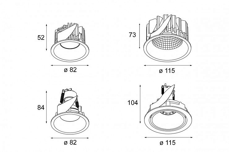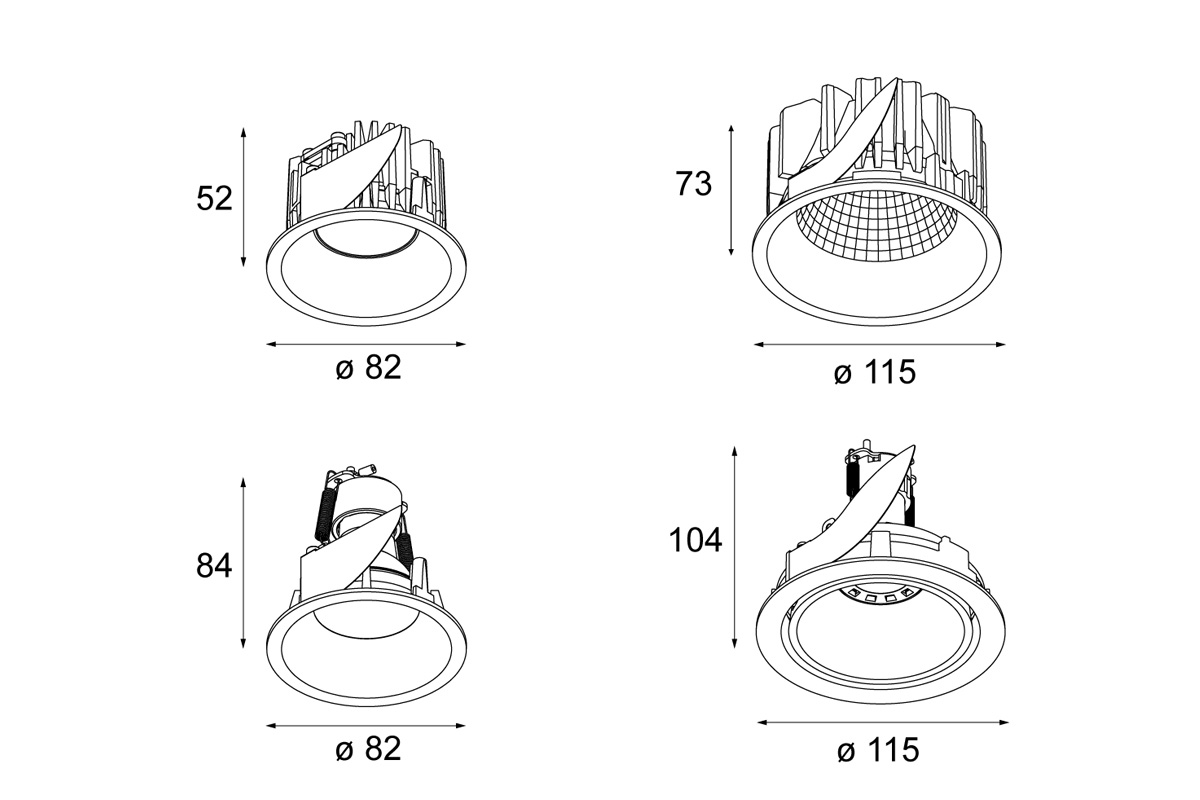 Vgradno svetilo z usmerjeno svetlobo. Možnost dodajanja različnih mask in ohišij.