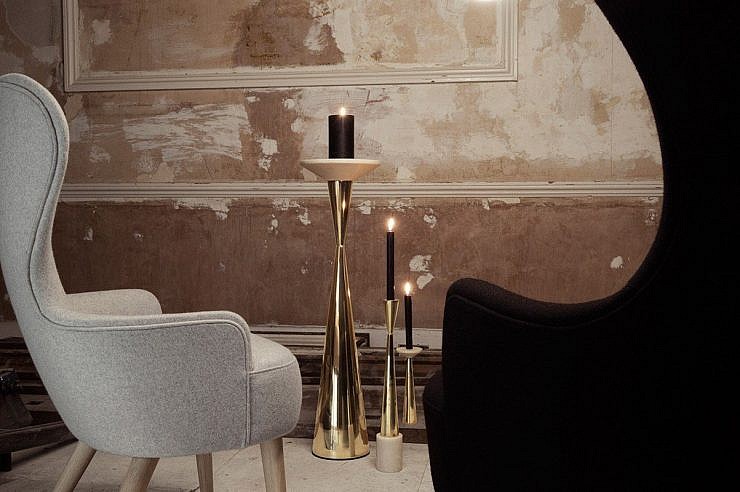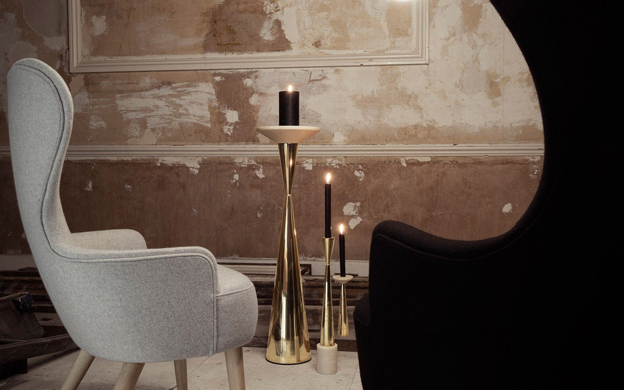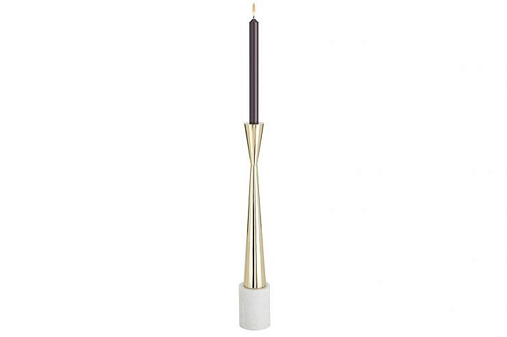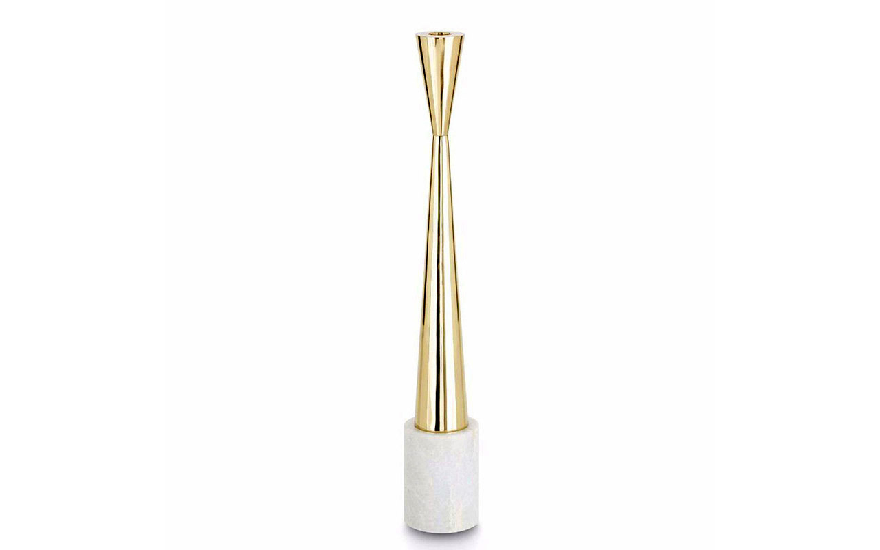 Svečnik iz belega marmorja in polirane medenine, višina 50cm.