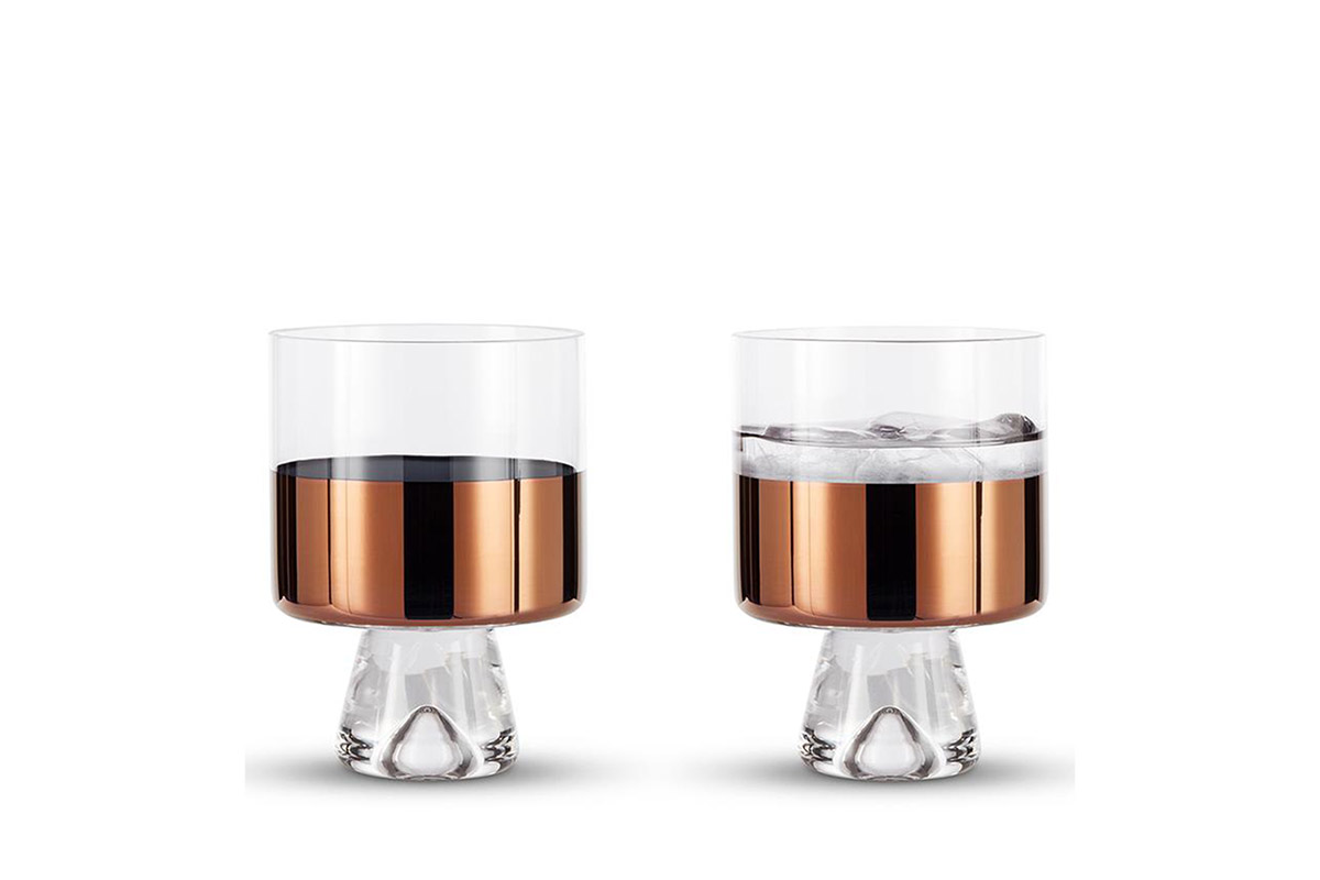 Nižji kozarci za serviranje vina ali drugih pijač, steklo in baker. Komplet (2 kozarca) 240ml.