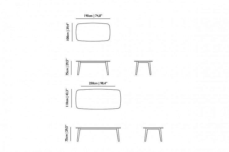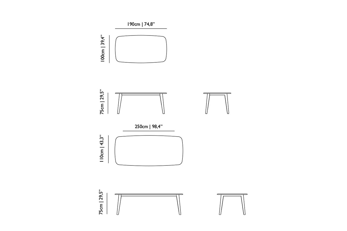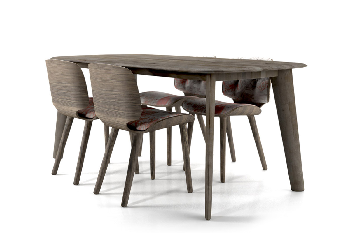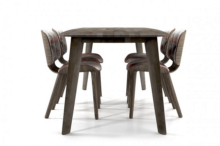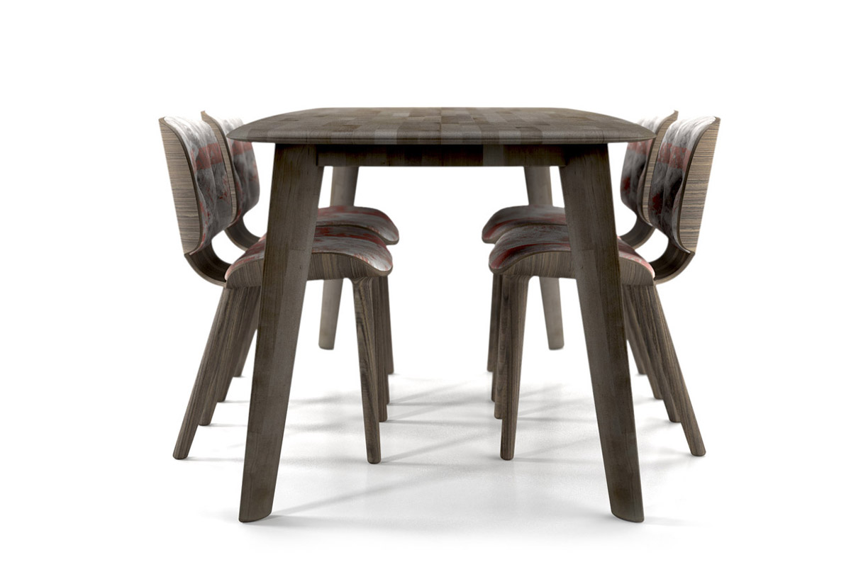 Jedilna miza s posnetimi robovi izdelana iz masivnega hrasta. Možnost kombinacije z jedilnimi stoli.