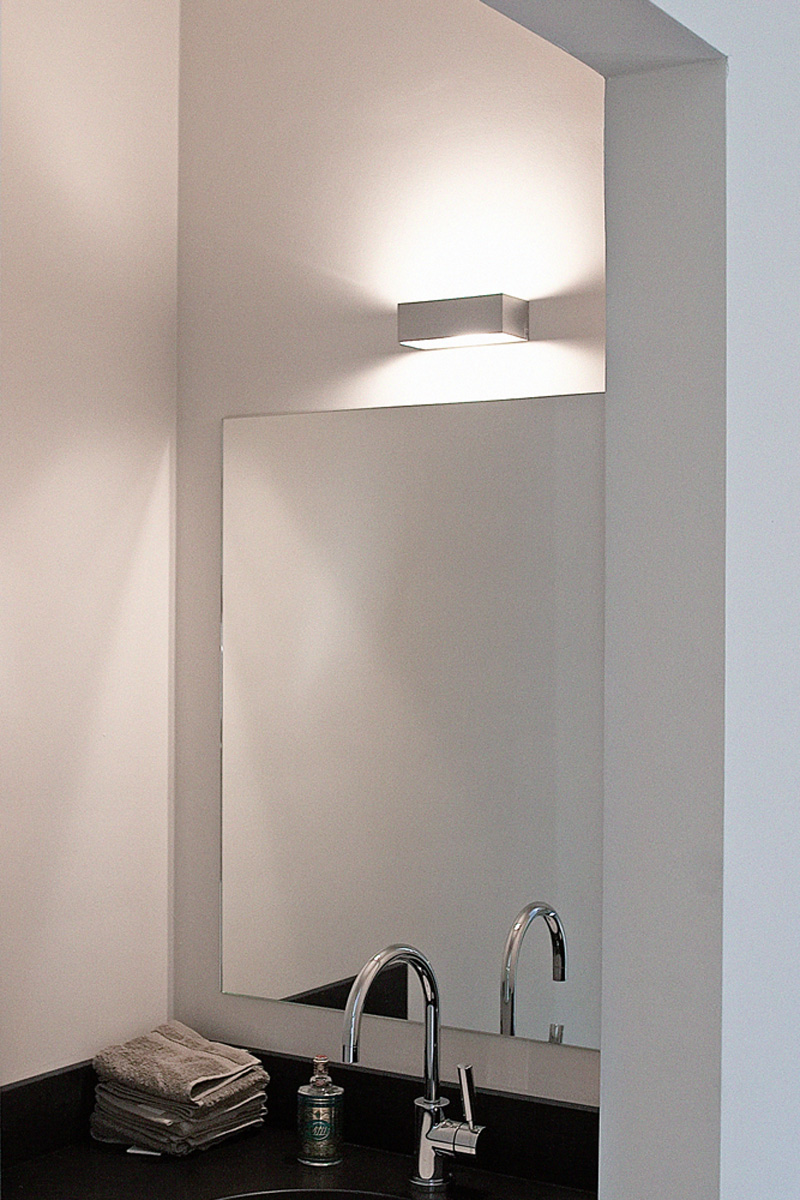 Stensko svetilo z usmerjeno svetlobo minimalistične oblike in različnimi svetlobnimi viri. Svetilo je v modelih, katero sveti lahko enodirektno ali dvodirektno. Model s peskanim steklom je primeren tudi za kopalnice.