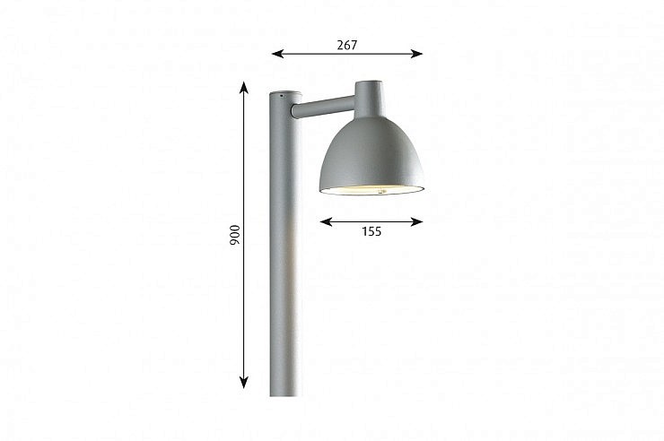 Zunanje stensko svetilo s senčilom na stebričku, svetilnost popolnoma usmerjena navzdol. Zaščita IP44, IK05.