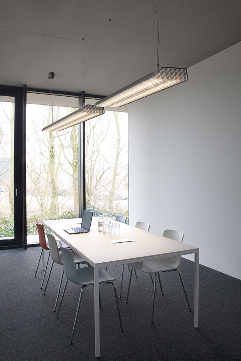 Vaeder je nadgradno ali viseče svetilo, oblikovno in tehnično zasnovano za osvetlitev pisarn, domačih pisarn ali delovnih površin. Posebej oblikovano senčilo v obliki satovja omogoča nizek faktor bleščanja, s svojo posebno obliko pa atraktiven element v prostoru. Možnost izbire regulacije dali/pushdim/1-10V.