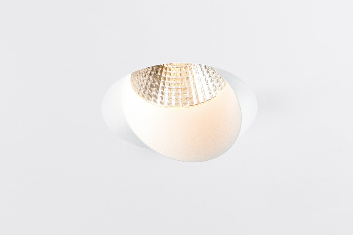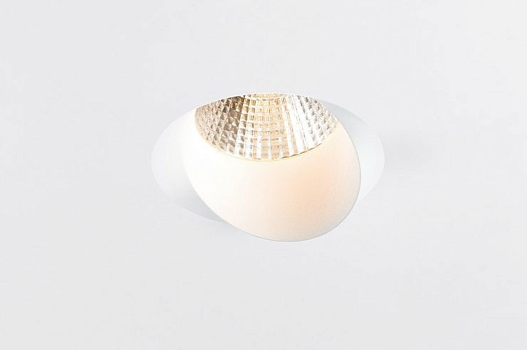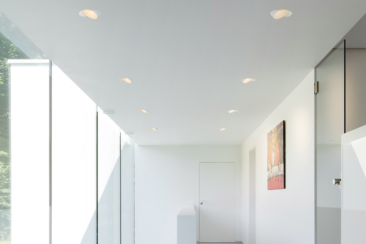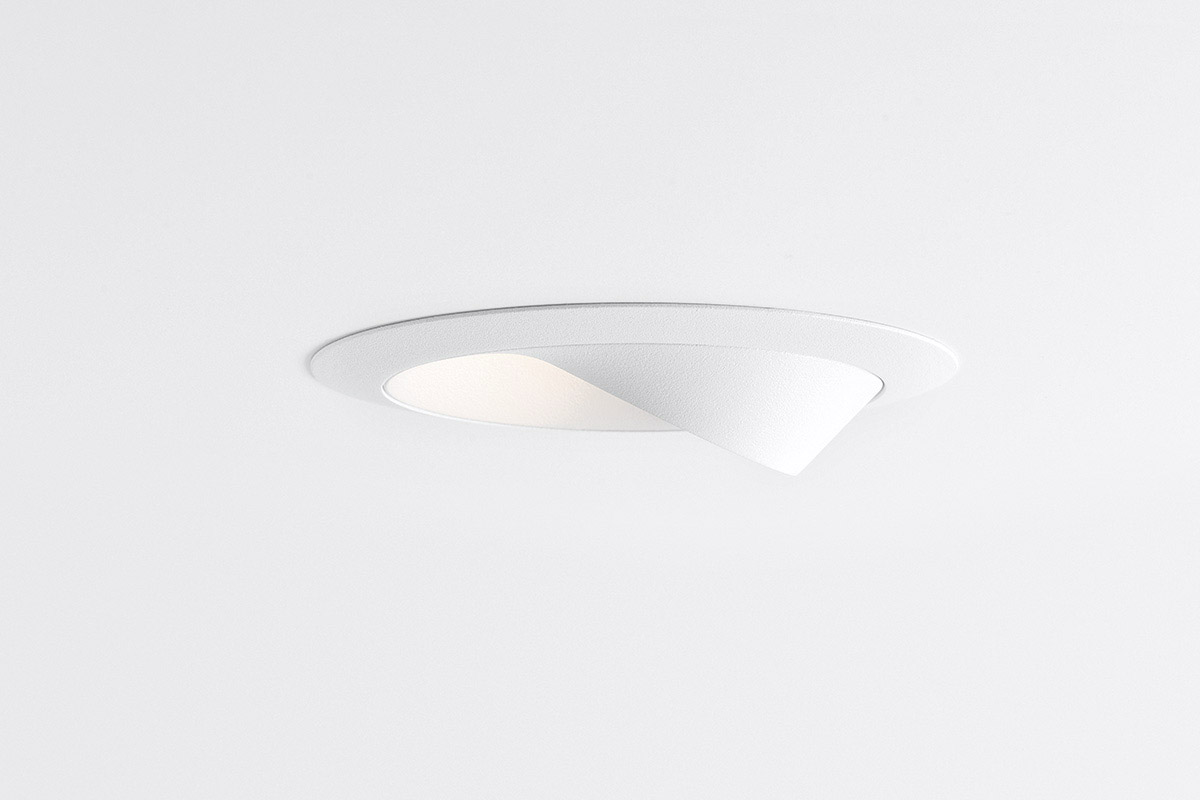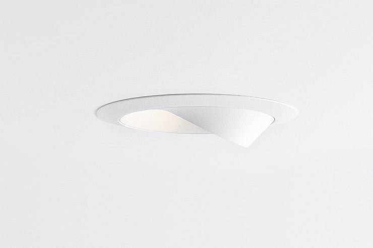 Neposreden pristop, natančen zaključek in eleganten dizajn so privedli do svetlobne napeljave, ki je na pol vdolbina v strop, malo pa je pokukala čez rob. Steno bo enakomerno osvetlil z vodoravnim in širokim svetlobnim snopom.