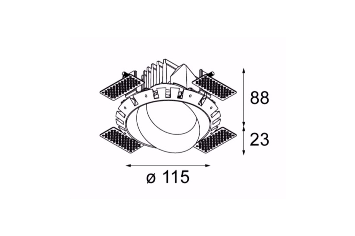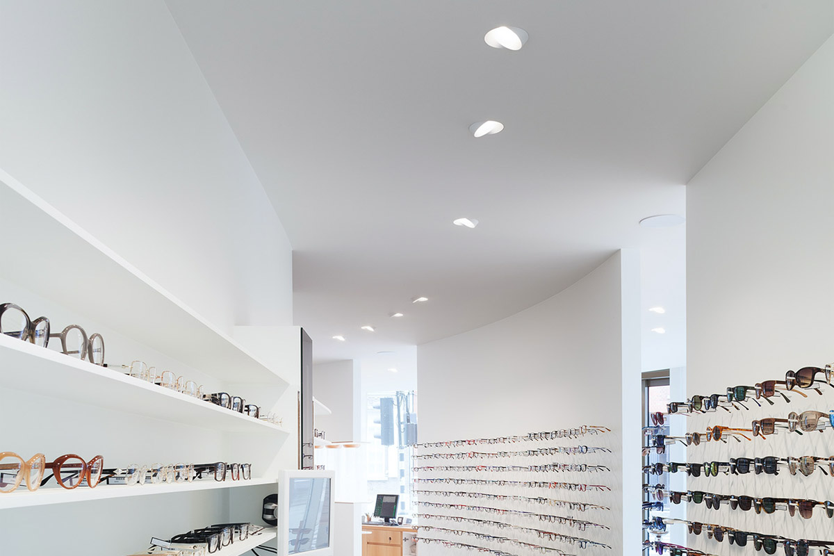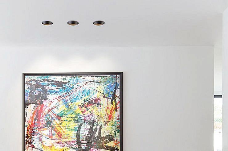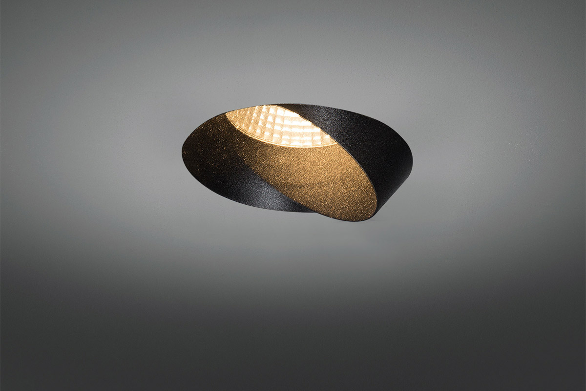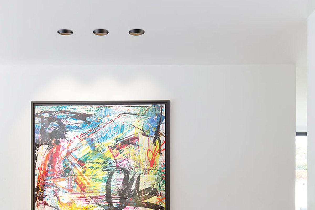 Neposreden pristop, natančen zaključek in eleganten dizajn so privedli do svetlobne napeljave, ki je na pol vdolbina v strop, malo pa je pokukala čez rob. Steno bo enakomerno osvetlil z vodoravnim in širokim svetlobnim snopom.
